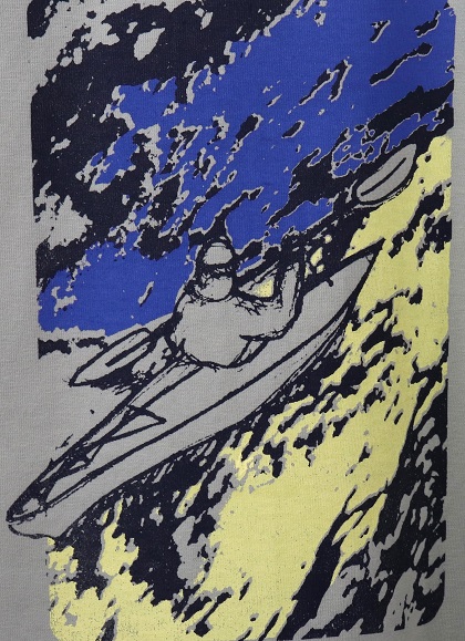 Fish of geometric pattern is screen printed with 2 colors – blue and aqua.